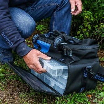 De Preston World Champion Team Feeder Bag is ontworpen om een breed assortiment voerkorven en bijbehorend materiaal te herbergen. De Preston World Champion Feeder Bag wordt geleverd met drie uitneembare opbergdozen die naar wens ingedeeld kunnen worden, de doos die je wilt gebruiken kun je in het bovenste compartiment opbergen zodat je er gemakkelijk toegang tot hebt tijdens het vissen.