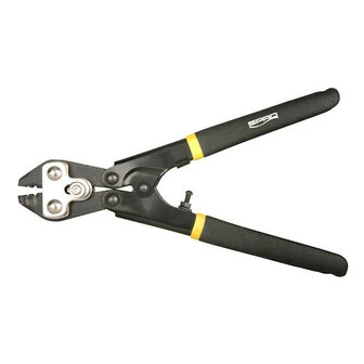 Dubbele krimp-tang van 21cm, gemaakt met een hoog-mangaanstalen bek en high-carbonstaal handvat voor het zeker en veilig zetten van crimps. De tang heeft 3 posities: 1: 0.1-0.5mm, 2: 0.5-1.0mm en 3: 1.0-2.0mm.